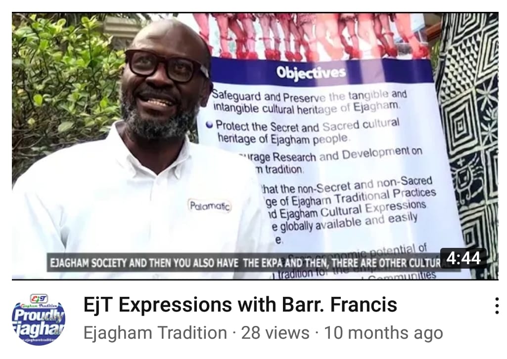 This programme produces motivational expressions and statements of commitments from individuals who are helping EjT realise its mission, vision, and objectives. This programme seeks to ignite the passion of everyone to commit their skills and resources to help EjT Document, Digitalise, and Disseminate Ejagham Traditional Practices and Cultural Expressions.
