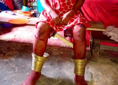 Agud: Agud is a secondary Shaker type instrument. They are worn on the ankles as shown and are activated by the performer. They are made from drawn bronze wire. It is worn by the performer until the performance grand finale.