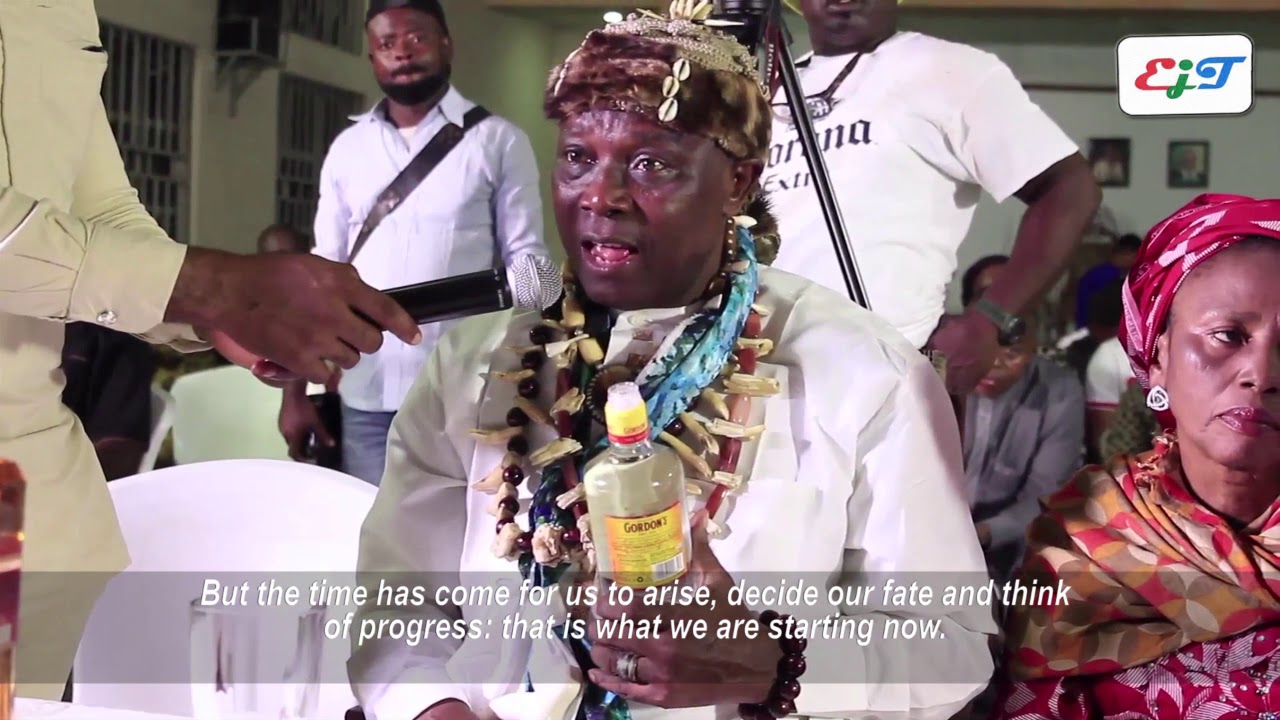 December 23rd 2019, His Royal Majesty (HRM), Ndidem, Sir, Amb. Dr. (Barr.) Patrick Inok Oquagbor V KSM JP, The Ndidem of Calabar, Paramount Ruler of Calabar Municipality and Grand Patriarch of the Ejagham Nation, performs a libation in ‘Ejagham Tradition’s’ (EjT) annual TALK SHOW.